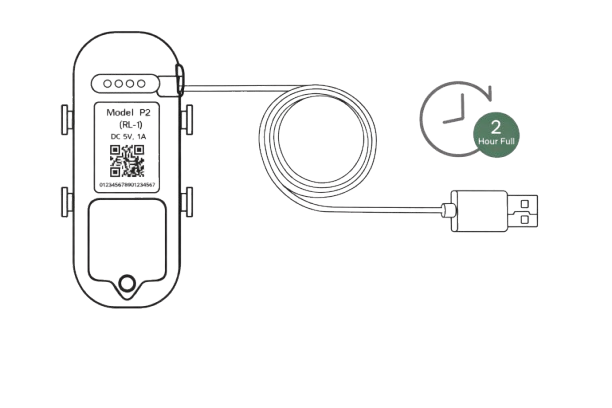 8) Charging: Connect the charging cable to the tracker (Golden Magnetic Pins on the back of the tracker) in the magnetic direction, and select a compliant power adapter to charge the tracker.